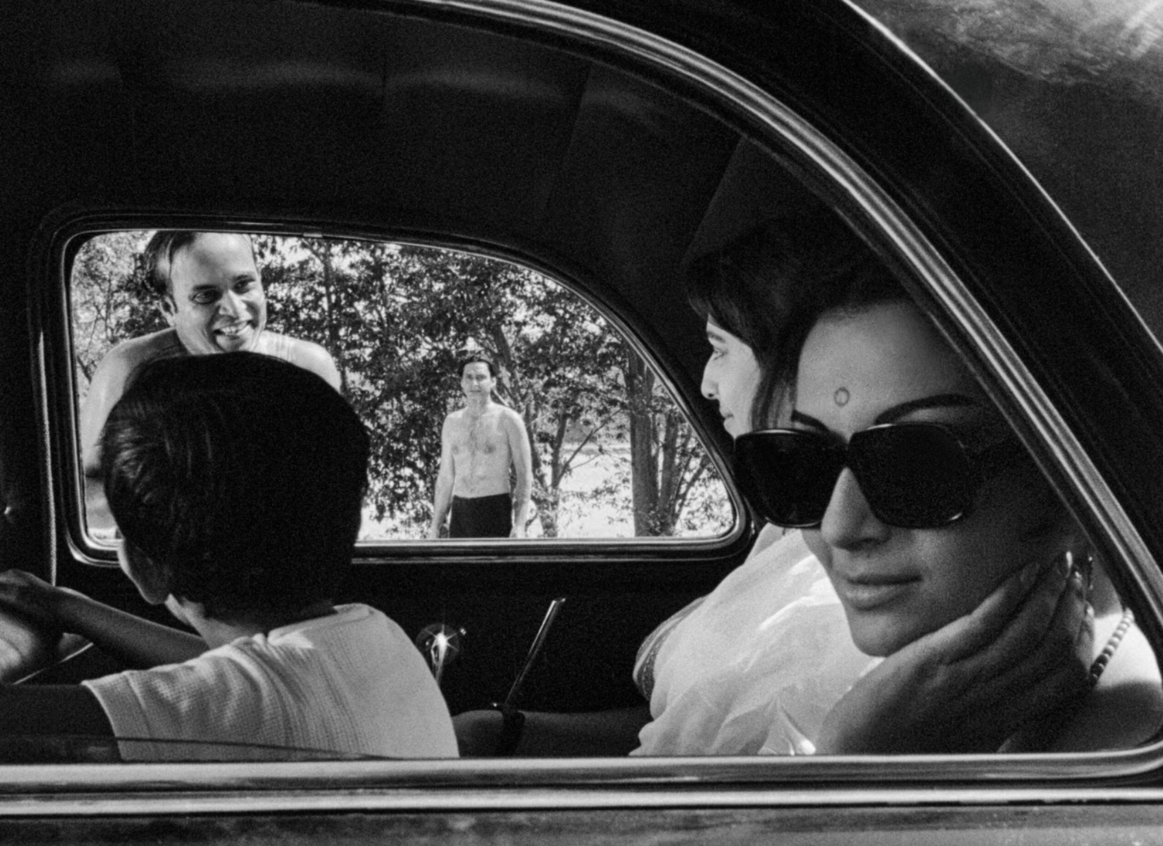 Satyajit Ray, Days and Nights in the Forest / Aranyer Din Ratri (1970), from top: Robi Ghosh and Soumitra Chattopadhyay (from left, outside car), and Kaberi Bose and Sharmila Tagore (from left, inside car); Tagore and Soumitra Chattopadhyay; Samit Bhanja and Ghosh; Subhendu Chattopadhyay; Bhanja, Subhendu Chattopadhyay, Soumitra Chattopadhyay, and Ghosh; Tagore; Soumitra Chattopadhyay, Subhendu Chattopadhyay, Bhanja, and Ghosh.
