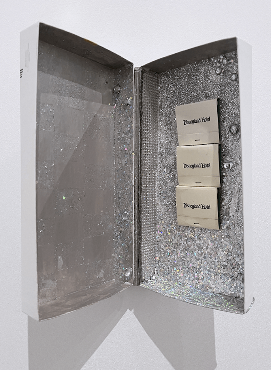 From top: Liz Craft, XOX, 2018, ceramic, aluminum, wood, courtesy and © Liz Craft; Louis Fratino, Ale in Liguria, 2025, © Louis Fratino, courtesy of the artist and David Zwirner; Monica Nouwens, Sirius, 2019, inkjet print, courtesy and © Monica Nouwens; Kate Costello, Explosion i, 2024, acrylic on paper, mounted on board, courtesy and © Kate Costello; Steven Arnold, Connecting to the Infinite II, 1985, © the Estate of Steven Arnold, courtesy Fahey/Klein Gallery; Kara Walker, Unmanned Drone (2023), © Kara Walker, courtesy the artist, Sikkema Malloy Jenkins, and The Brick; Anna Sew Hoy, Lightly Buckled, 2026, stoneware, glaze, cotton corduroy, © Anna Sew How, courtesy of the artist and Commonwealth and Council, Los Angeles; Kerry James Marshall, Destiny Is a Rose, 1990, acrylic and collage on canvas in painted wooden frame, © Kerry James Marshall, courtesy of the artist and David Zwirner; Amy Yao, California Holiday Memory (SK), See’s candy box, matchbooks, acrylic paint, glitter, rhinestones, foil paper, courtesy and © Amy Yao; Lynn Hershman Leeson, She Who Laughs Last, 1968–2022, wax cast, glass eyes, wig, custom sensors, sound file, makeup, butterflies, glasses, © Lynn Hershman Leeson, courtesy of the artist and Hoffman Donahue; Christina Forrer, Sun, 2020, cotton and wool, courtesy and © Christina Forrer; Linus Gruszewski, Thank You (2026), plastic bags, courtesy and © Linus Gruszewski.